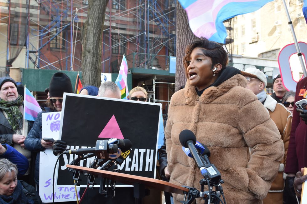 By noon on February 14, Christopher Park, the site of the Stonewall National Monument, was filled with speakers, leaders, activists, and citizens from the LGBTQ+ community, all decrying the aforementioned erasure–as it stands right now, the site only lists the designation “LGB” and does not use the word queer to explain the significance of the Stonewall National Monument. To ignore transgender and gender nonconforming contributions to the Stonewall Uprising is not only a factual error, it’s a dangerous one. Transgender and gender nonconforming people have been a vital part of queer history and American history since the country’s founding (and long before).
