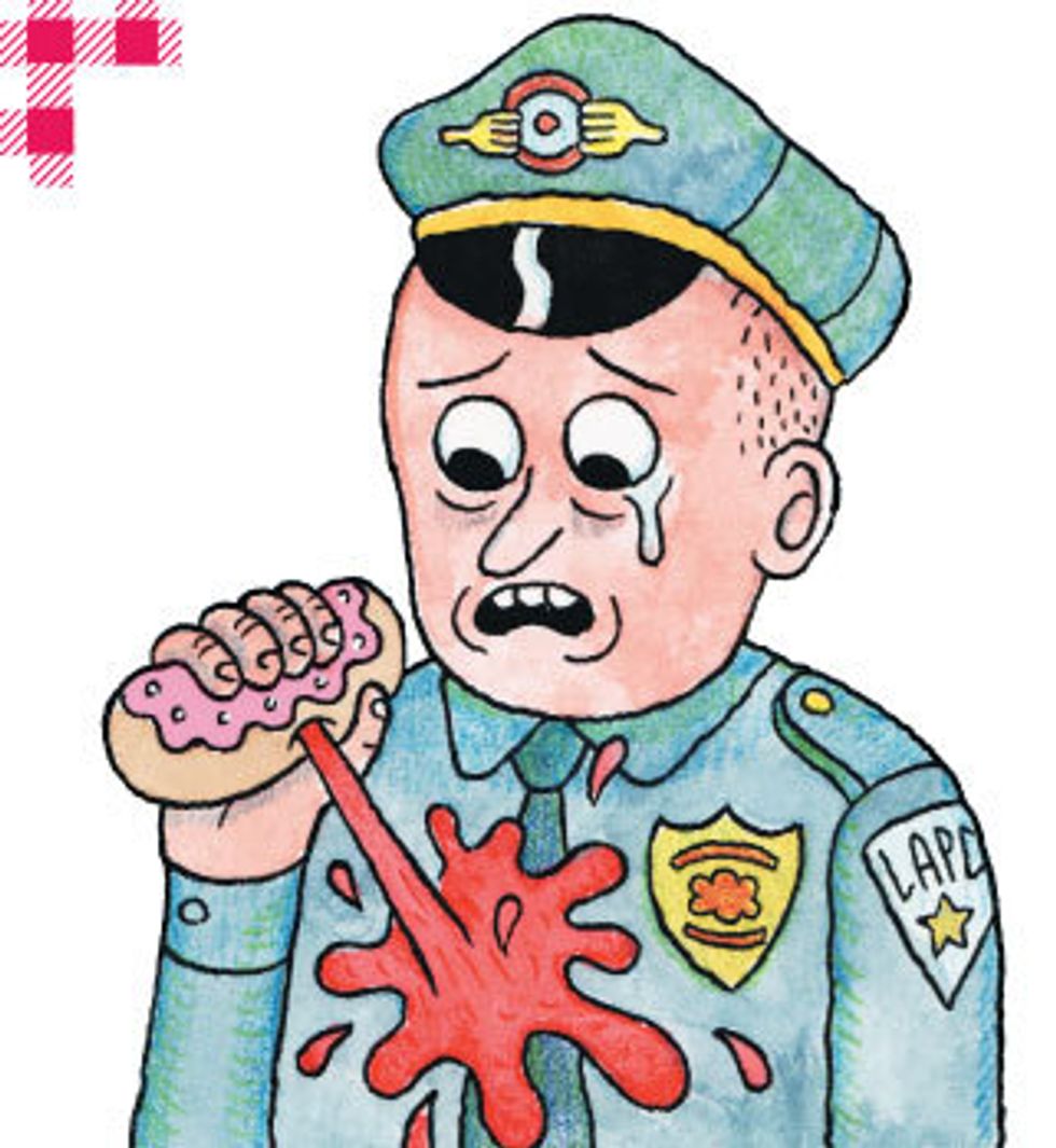 ![]() | \na COP on doughnuts:\nI think the cop/doughnut thing came around because cops, working late at night, need coffee to stay awake, and the only way to get coffee in the wee morning hours is at the all-night doughnut places. So the doughnut thing may not be accurate. In fact, my buddy Stan has been a cop for 33 years and has never eaten one because the association bothers him. But me, I love doughnuts: old-fashioneds, apple fritters, buttermilk bars, cake, maple bars, twists ... all of them! Once I not only had a warm Krispy Kreme, I ate six of them at one time, and I'm willing to bet I could eat a dozen if I had a Diet Coke to wash it down. I like the independent places best. Each has a specialty that they make, and the staff likes to see cops come by. The only thing I would say cops like more are sunflower seeds, based on all the damn seeds I find on the floor of my police car.Andrew Smith is a Los Angeles Police Department Commander.\n |