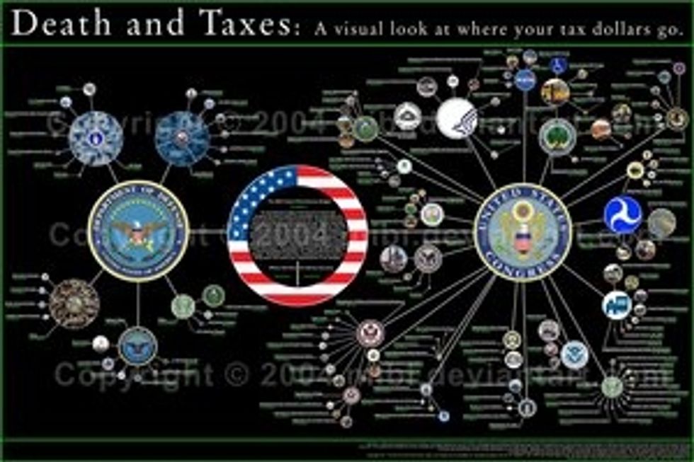 This awesome chart explains where all the money the government rakes in every April 15 goes. We can't vouch for the accuracy of the figures, but it's a lovely graphical representation about how the government is inappropriately spending our hard-earned money.