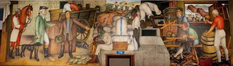Quite to the contrary. In our view, the “Life of Washington” provides an invaluable opportunity for students to engage in a serious and sustained way with social justice issues. There’s a strong case to be made that Arnautoff is exposing – rather than celebrating – slavery and genocide. Moreover, those arguing for the mural’s removal are overlooking the fact that African Americans are not only portrayed as picking cotton and that Native Americans are not only depicted as victims of genocide. Rather Arnautoff is insisting that African Americans and indigeneous peoples were key historical actors in the making of the United States.
