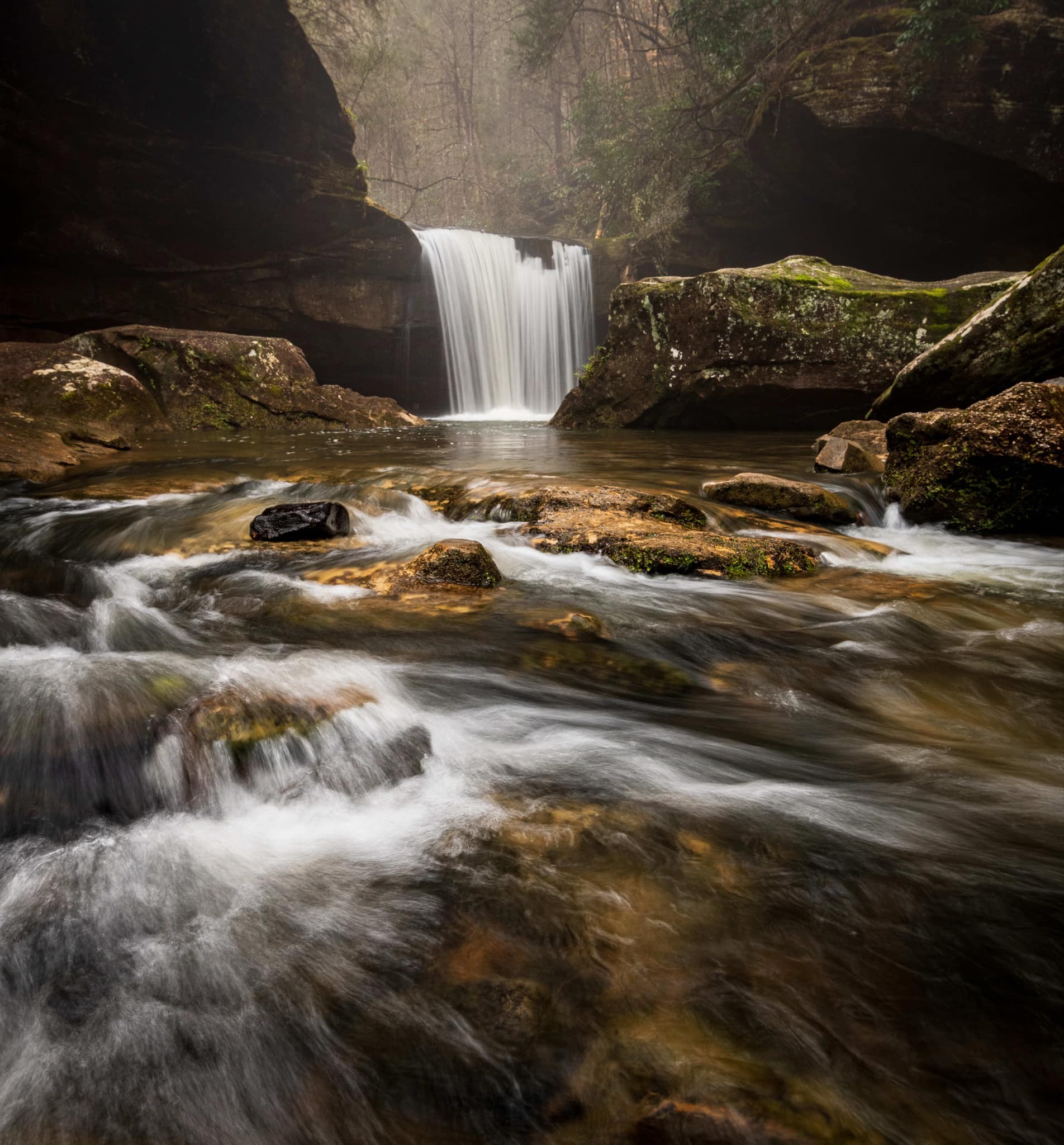 Dog Slaughter Falls is located within Daniel Boone National Forest, which sprawls across 708,000 acres and 21 counties in Eastern Kentucky. But even if you’re not from the area, you still might be familiar with its star attraction: the massive and majestic Cumberland Falls, one of the only places on Earth where you can regularly see a “lunar rainbow”—a phenomenon created by moonlight rather than sunlight.