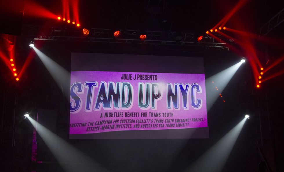 To create space for people to do this onstage and raise funds for charitable organizations in a cultural moment such as this is its own act of radicality and love. Doing all of this for other people as you navigate your own life and a burgeoning career is another matter. And while it's a successful career, it’s not always easy to balance, Julie says: “I think that a lot of a lot of community organizers and activists will relate to this, that there is sometimes a point in time when the the the darkness or the thing that you're fighting so hard against, feels really close, and it feels like you're taking a really big risk doing the things that you're doing.” She continues, “I felt that way about when I spoke at MSNBC. Like, oh gosh, I'm making myself a target for the right-wing media and this side of the world that has no desire to see someone like me in a public place.” But doing Stand Up NYC made her think back to her childhood in Texas, and what she would have wanted then as an openly queer child in Catholic school. “There is someone who is that age now, who is looking to me and is saying, well, if she can do it, then I can, too. And I always have wanted to be the person that younger Julie wanted to look towards.”