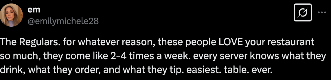Articles on the subject of being a regular at a restaurant in food publications like Eater and The Takeout mention how being a regular builds a relationship with you and the employees at the establishment, forming friendly bonds like the one between Jerry and the Burger King staff. You can also feel a sense of community while enjoying your meal or coffee alongside other regulars and the wait staff, feeling at peace in a place between work and home.