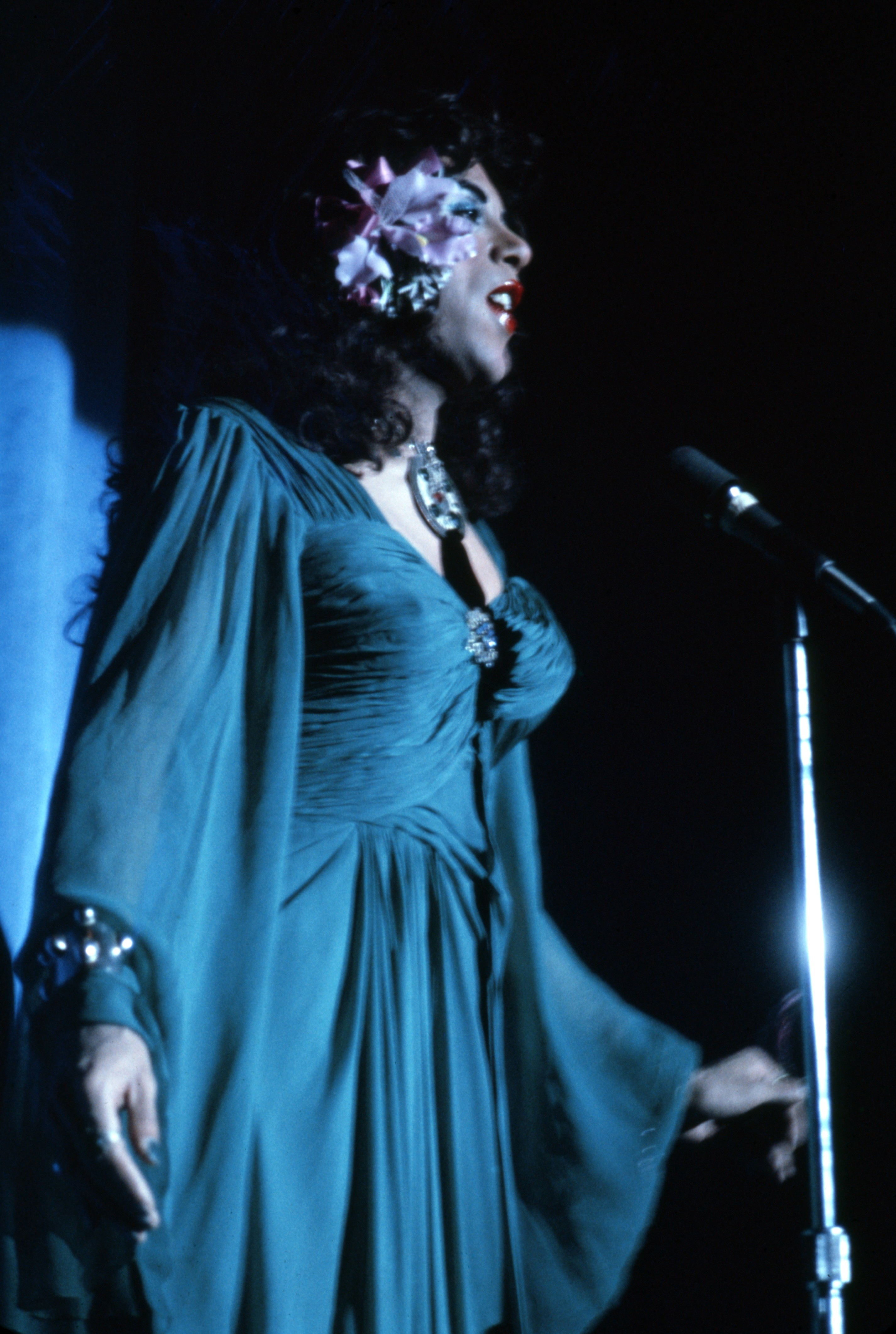 Baykal also performed with the legendary performance art troupe The Angels of Light, known for their commitments to gender-and-genre-bending, glittery revelry on stage. This became another of the worlds Baykal inhabited downtown, and beginning in 1974 she produced and directed the now-historic Palm Casino Revue shows, which brought together performers and nightlife denizens of all stripes. As its former lighting operator Steve Turtell described it, “Take a big slice of vaudeville, top with a hefty dollop of musical comedy, add in some thrift-shop, nineteen-thirties Hollywood glamour, season it with early punk rock and the nascent, Lower-East-Side art scene…and you’ll get some idea of the wild ride that the Palm Casino Revue gave to its lucky audiences.” The show ended, however, when Baykal faced non-Hodgkins lymphoma, and lived quietly for two years in Oakleyville on Fire Island with the artists Paul Thek and Peter Hujar.