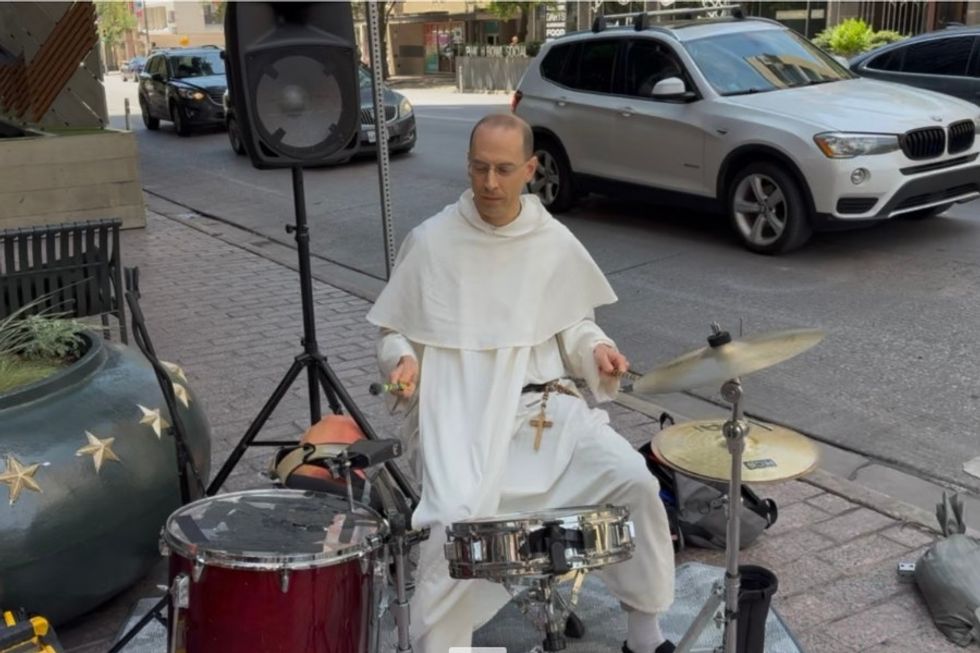 Playing on the streets of Austin, TX while in town for a weddingPhoto credit: courtesy of Fr. Hyacinth Marie Cordell, O.P.