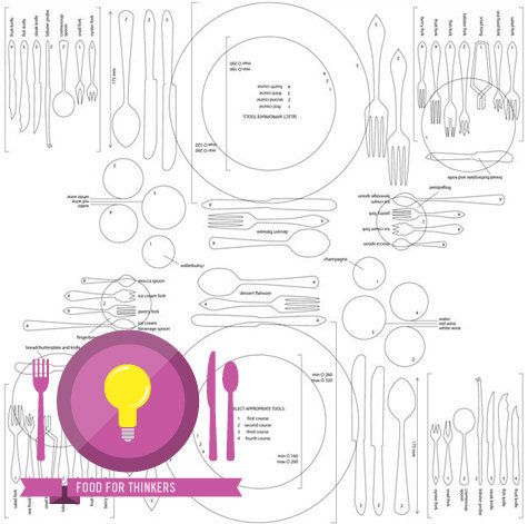 In two back-to-back Food for Thinkers posts, architecture and urbanism blog Deconcrete explores how food shapes the way we act in space. In "Food as Eating Choreography" blogger Daniel Fernández Pascual imagines the dining table as a stage or playing field, upon which the diners' relationships with each other and their food are predefined by a culturally particular arrangement of dishes and utensils into place settings: