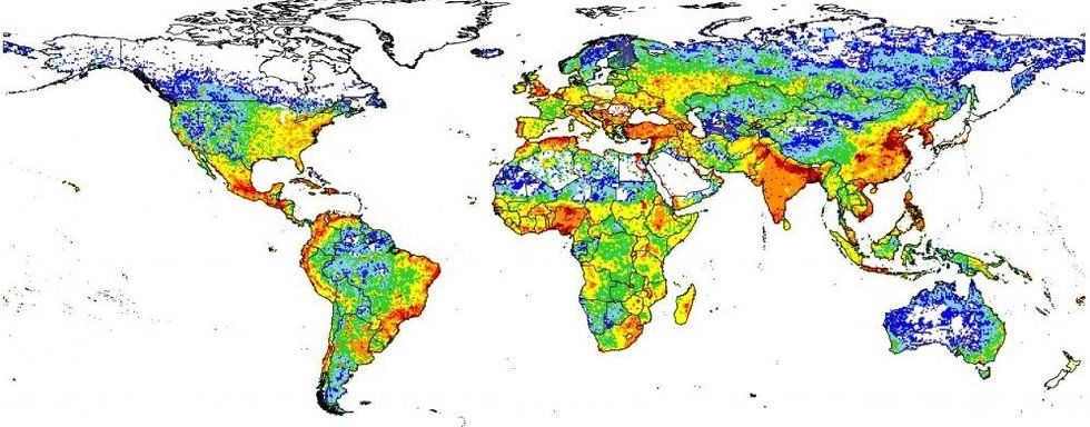 The map reveals large carbon dioxide concentrations around South America and Southern Africa. Image by NASA/JPL-Caltech