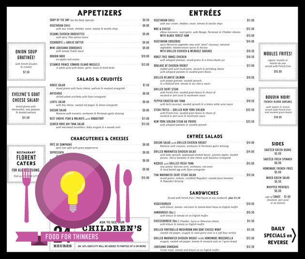The New York Public Library's historic menu collection is one of the most impressive in the world, and its treasures are frequently featured on librarian Rebecca Federman's blog, Cooked Books. As part of Food For Thinkers, Federman chose a handful of curious examples—such as the way a childrens' section added to the Cafe Florent menu above tells the story of larger demographic changes in the neighborhood—to reflect on what makes menus such a fascinating subgenre within food writing.